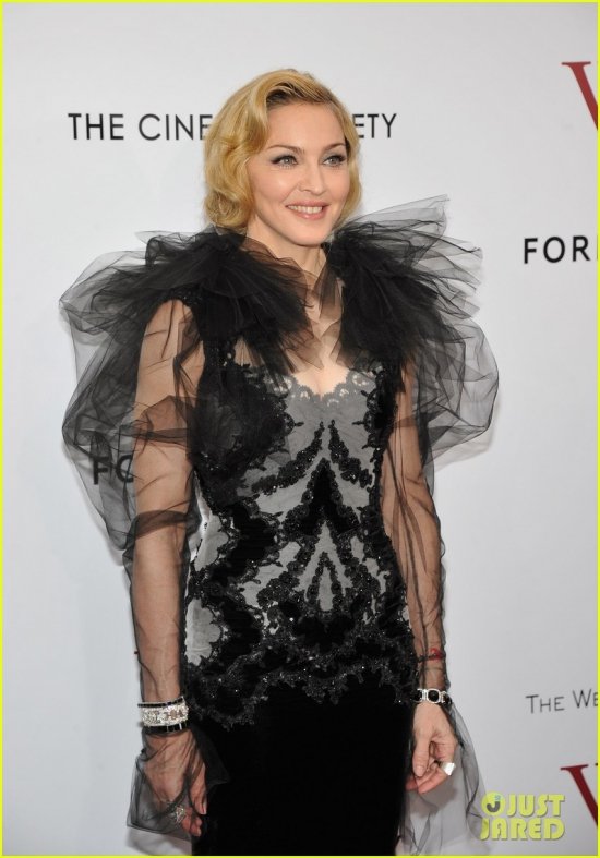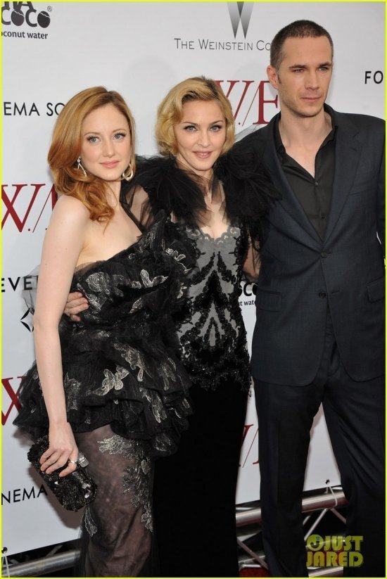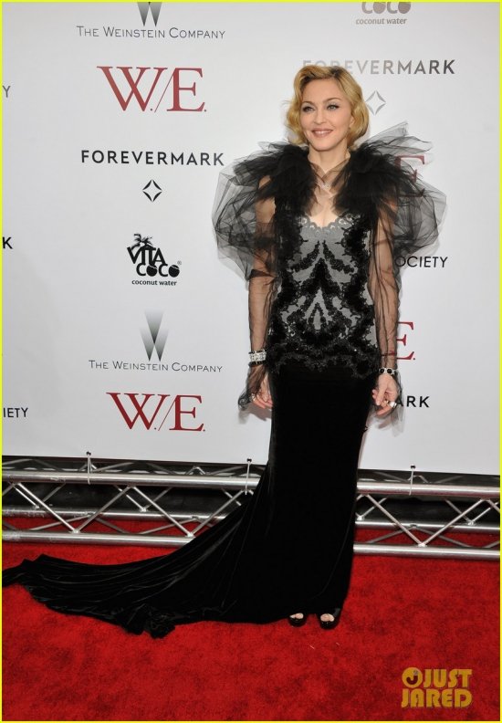 Мадонна представила свою отмеченную «Золотым глобусом» (за Лучшую песню) картину «Мы. Верим в любовь» в Нью-Йорке. На красной дорожке в театре Зигфельда Мадж и исполнительница главной женской роли Андреа Райсборо смотрелись как две экзотические бабочки. Остальные были попроще:)