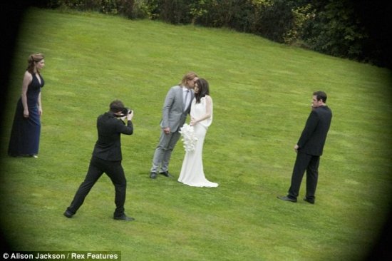 Элисон наняла актеров, внешне издалека походящих на Энжи и Брэда, обрядила их в праздничное, поместила в заданные условия и устроила свадебный папарацци-фотосет.