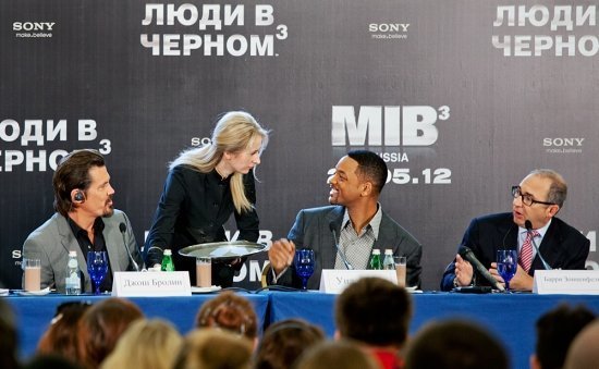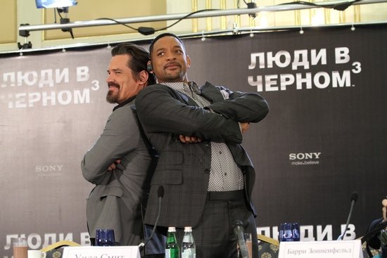 Команда фильма «Люди в черном 3» завершила промо-тур в российской столице – потеряв по дороге как Томми Ли Джонса, так и супругу Уилла Смита Джаду: девушка отправилась в Канны представлять мультфильм того же порядкового номера «Мадагаскар 3» — и тоже, между прочим, в 3D. В Москву приехали Уилл, Джош Бролин и режиссер Барри Зоннефельд. Эта бравая троица блестяще справилась с тем, чтобы раскачать и покорить журналистов и публику.