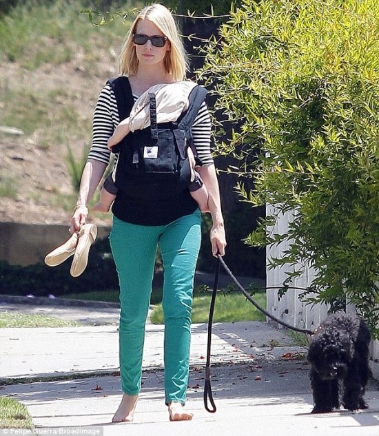 Голливудская мама-одиночка Дженьюэри Джонс находилась под прицелом папарацци все выходные. В субботу фотографам удалось заснять звезду «Безумцев» во время прогулки с сыном Ксандером и собакой, а в воскресенье подкараулили, когда актриса с пацаном шла пообедать.