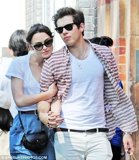 Кира Найтли, как известно, не так давно обручилась с Джеймсом Райтоном из группы Klaxons. Возлюбленный преподнес актрисе кольцо с одним-единственным бриллиантом — достаточно простое по дизайну, но оттого не менее ценное:) Кира, понятно, с ним теперь не расстается — и с женихом, и с кольцом:). На днях и у широкой публики появилась возможность полюбоваться подарком Джеймса. Папарацци отловили парочку в Лондоне: те шли рука в руке, время от времени обменивались жаркими поцелуями.