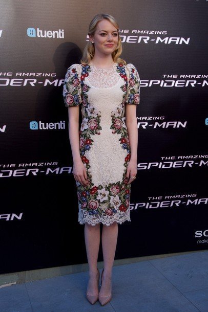 Команда фильма «Новый Человек-паук» со скоростью пули переместилась из Берлина в солнечный Мадрид. При такой скорости турне стилисты Эммы Стоун сломались и для Испанцев нарядили ее буквально в оборки и гобелен. По-моему, им просто надоело думать, как бы еще прекраснее нарядить актрису, и они сдались. На фотоколле Эмма появилась в коричневом платье с голубой рюшей по подолу от Roksanda Ilincic, в сережках от Melinda Maria и неизменных «лубутанах». На премьеру девушка вышла в беленьком гобеленчике от Dolce&Gabbana, украшениях от Van Cleef & Arpels и «лубутанах» снова же. Лишь туфли не подводят в этих ансамблях, да…