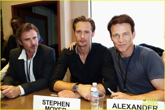 Конвент ComicCon в Сан-Диего продолжается. Вчера там радовали народ своим присутствием звезды сериала HBO «Настоящая кровь». Стивен Мойер «обымал» Александра Скарсгарда, словно подтверждая слова своей супруги Анны Пакуин о том, что они со шведом приятельствуют. Джо Манганьелло и Кристин Бауэр прятались за темными очками…