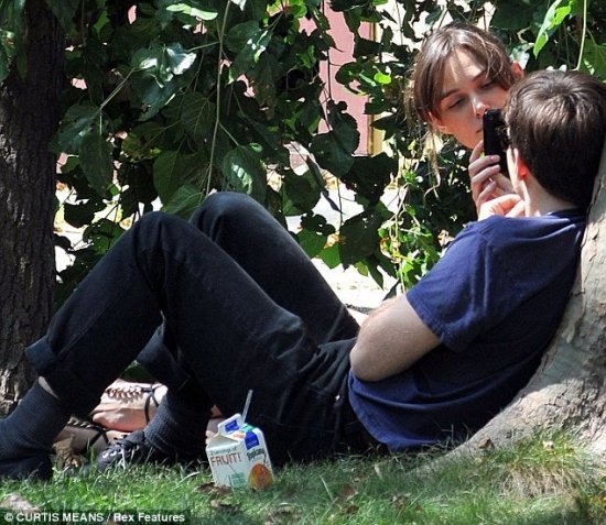 Жених актрисы — клавишник британской инди-группы Klaxons Джеймс Райтон — при этом в одиночестве не скучает. Он бдит за возлюбленной, постоянно присутствуя на съемочной площадке, в перерывах между сетами поит ее соками Tropicana (или она его?-) и позволяет романтически повалять себя под деревом. Когда же у Киры приключается выходной, они гуляют по городу рука в руке. Любовь!