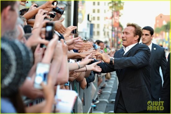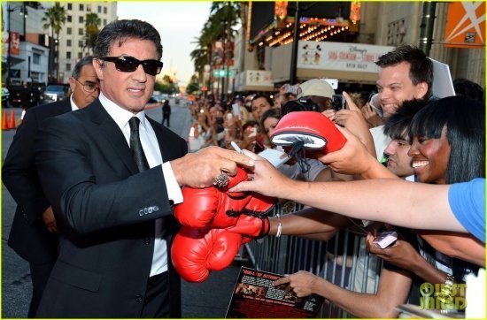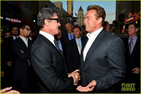 Слай взял с собой на премьеру двух дочек, а Арни — сыновей. Уж не хотят ли они породниться? Шутка-) Хотя было бы занятно, правда?-)