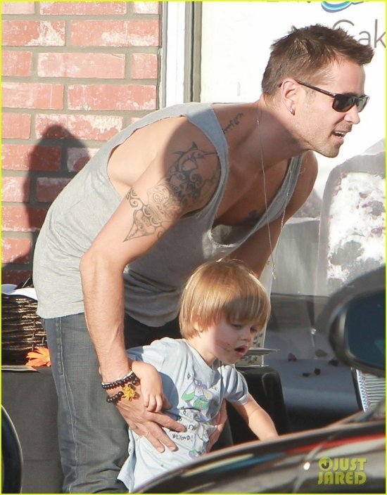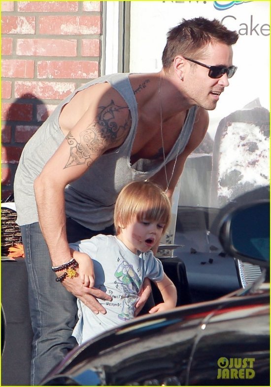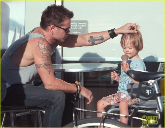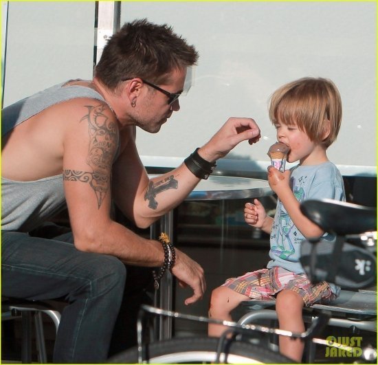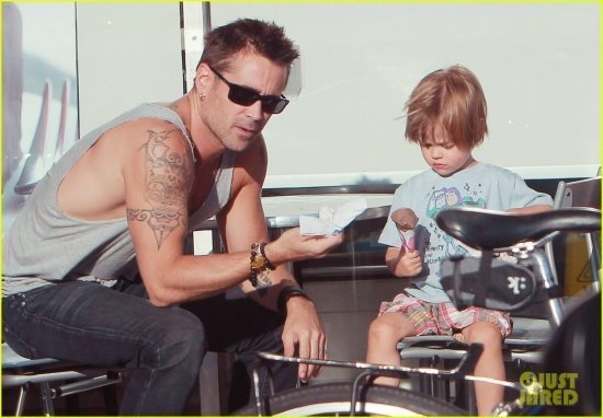 У Колина Фаррела в понедельник был родительский день. Актер сводил своего младшенького Генри в «Баскин Роббинс» и угостил мороженым. Затем отец с сыном завернули в газетный киоск, где мальцу приглянулся журнал.