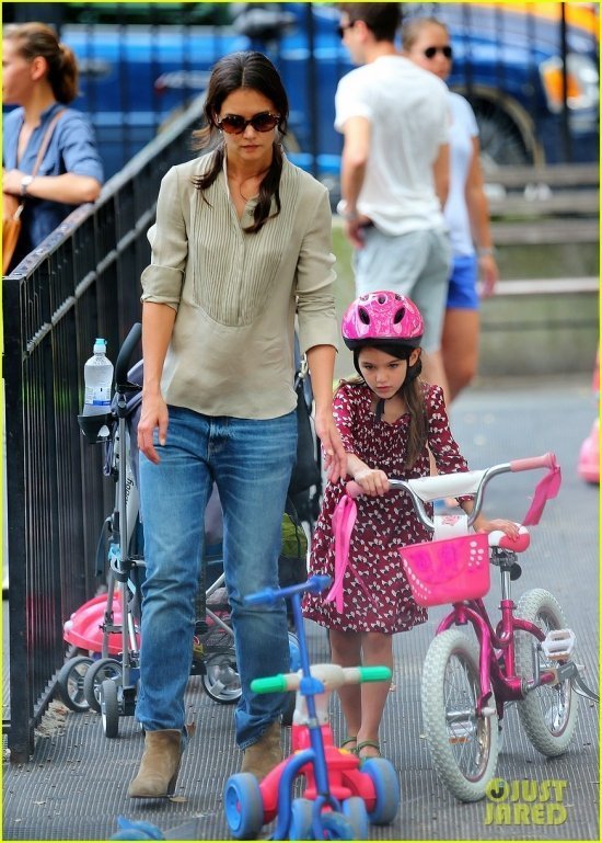 Сури Круз продолжает — под чутким маминым руководством — знакомиться с азами управления велосипедом. Не сомневаемся, что ее ждет успех: видите, как человек старается? Даже язык от усердия высовывает!-)