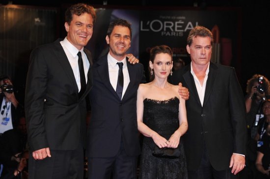 Актриса приехала на Венецианский кинофестиваль, чтобы представить свою новую работу в триллере «Ледяной». Фильм Ариэля Вромена, напомним, основан на реальной истории и повествует о наемном убийце Ричарде Куклински. Главная роль досталась Майклу Шеннону, Вайнона играет его жену, а Рэй Лиотта — работодателя от мафии. В других ролях заняты Крис Эванс (практически неузнаваемый-), Джеймс Франко и Дэвид Швиммер, но на них мы остановимся подробней, когда они припожалуют на премьеру — Венецию все трое пропустили.