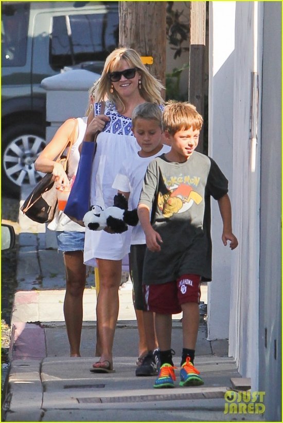 Очередная порция солнечного позитива от Риз Уизерспун. Беременную актрису папарацци отловили в Малибу: вместе с сыном Диконом, его игрушечной пандой и приятелем Риз прогуливалась в сторону своего дома, расположенного на пляже. Да, там у них лето продолжается, а мы тут уже начали кутаться:(