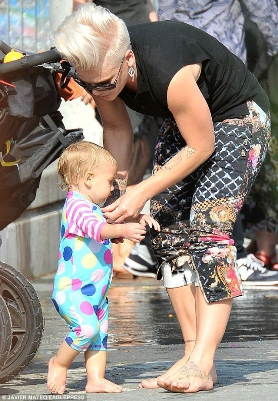 Море позитива подарили папарацци Пинк и ее дочурка Уиллоу. Вместе с мужем и папой Кэри Хартом девчонки отлично провели время в Hudson River Park на Манхеттене, продемонстрировав при этом различные наряды, в том числе и купальные-). В парке есть небольшой «лягушатник», и, конечно, Уиллоу не могла там не поплескаться. Пинк ограничилась тем, что сняла обувь и закатала брюки-)