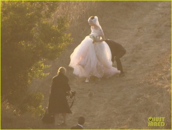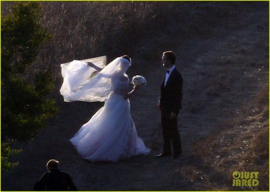Не успели мы сообщить о свадьбе Энн Хатауэй и Адама Шульмана, как уже можем предложить вам и первые фото с события. Увы, они производства папарацци, а эти персонажи не из тех, кого зовут разделить радость вступления в брак. Поэтому снимать им пришлось издалека, и картинки получились соответствующей расстоянию четкости.