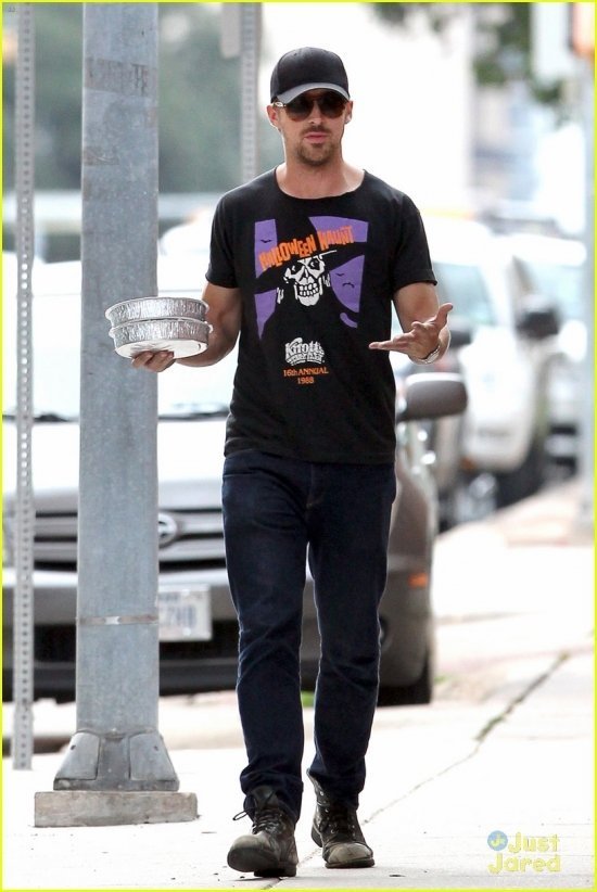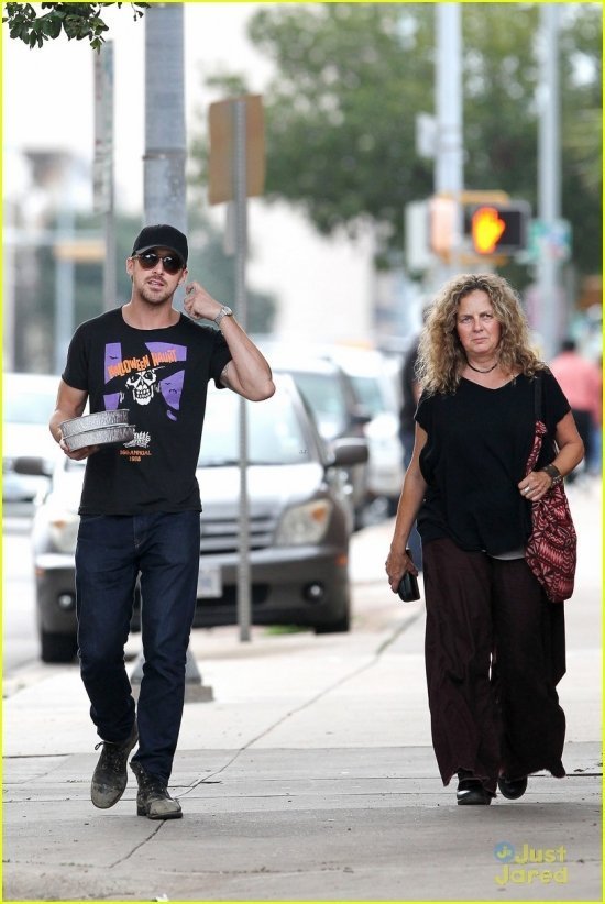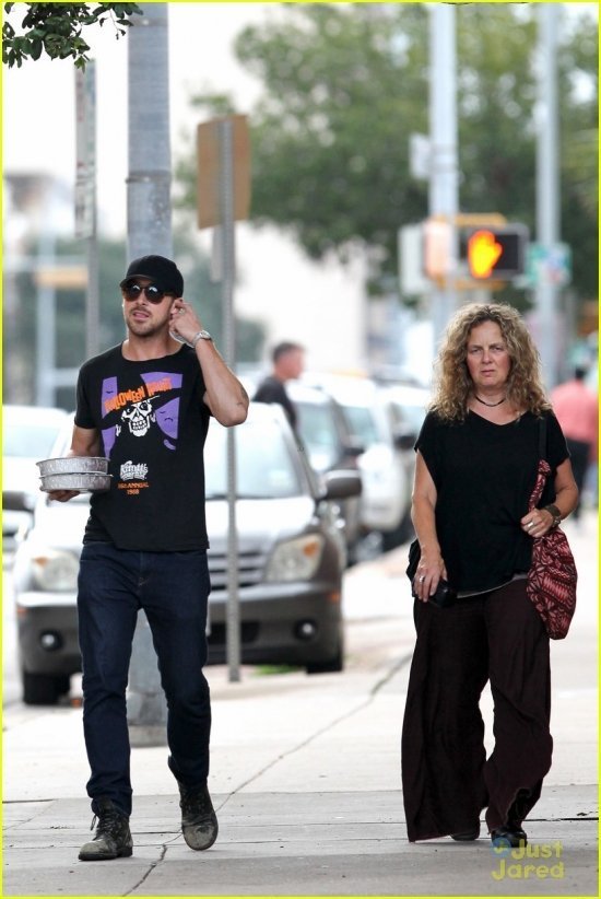 Райан, например, в этот уикенд принимал делегацию из родной Канады: его приехала навестить мать Донна. Мама с сыном выбрались на ланч, закупились обедами на вынос и за беседой направились есть их в укромное местечко. Правда, больше было похоже на монолог: Райан что-то говорил, активно жестикулируя левой рукой (в правой были те самые обеды-), а Донна неулыбчиво внимала. Чем же, интересно, он ее озадачил? Не роль же, в самом деле, читал?-)