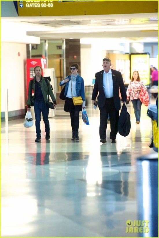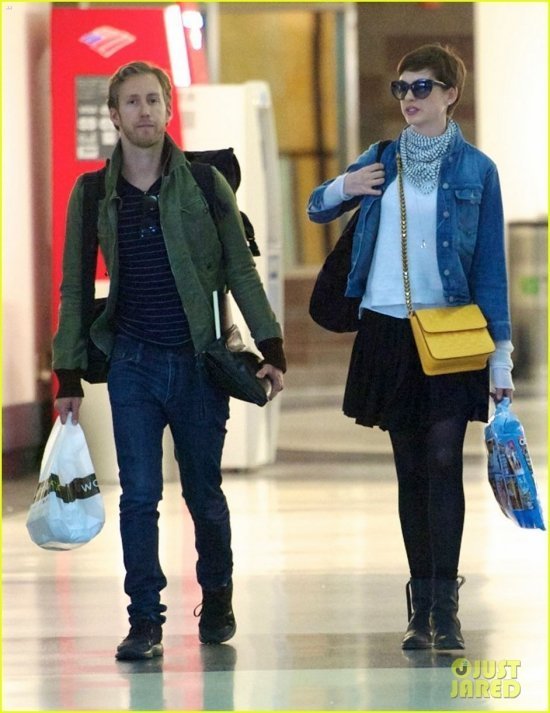 Но, увы, покамест можем предложить только послесвадебные картинки новоиспеченной ячейки общества: папарацци застукали Энн и Адама в аэропорту Лос-Анжелеса. Надеемся, они летели проводить медовый месяц где-нибудь в райских кущах.