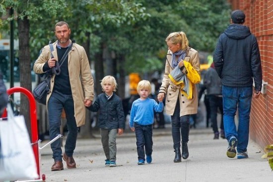 Лиев Шрайбер и Наоми Уоттс гуляют с сыновьями