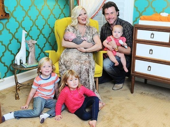 Многодетная мама Тори Спеллинг во второй раз официально продемонстрировала прессе своего с Дином МакДермоттом младшего отпрыска — сына Финна Дэйви.