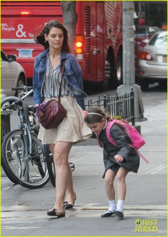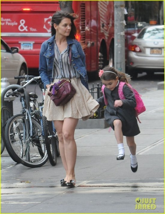 Очередной день из жизни Кэти Холмс и Сури Круз — на сей раз будний. Девчонки попались под папарацци-обстрел, возвращаясь в понедельник из школы. Сури, окрыленная, не иначе, радостью освобождения от учебы, всю дорогу прыгала-скакала аки заяц — и как Кэти при этом умудрилась не выпустить ее руку?-)