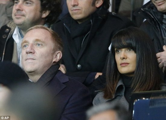Сальма Хайек и ее муж Франсуа Анри-Пино пришли на футбольный матч между «Пари Сен-Жермен» и «Стад Рене» (Stade Rennais). С чего бы вдруг?