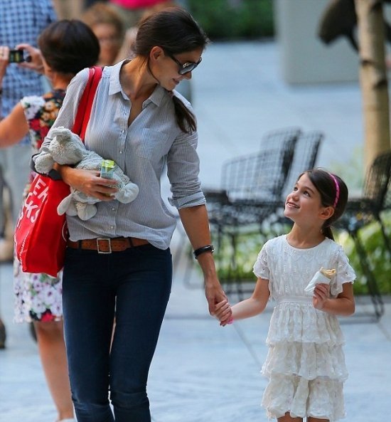Что касается Сури — единственной дочки пары, то Том и Кэти, несмотря на то, что обоим по работе приходилось много ездить, старались сохранить для дочки обычный распорядок дня: «Мы просыпаемся и всегда делаем одно и то же. У нее есть свои обязанности – я считаю, это важно. Сури сама заправляет кровать, относит свою посуду в мойку, а одежду – в стирку: делает обычные основные вещи. Я пытаюсь вести себя с ней так же, как и моя мама со мной… Проводить больше времени с дочкой, шить одежу для кукол, сажать растения в саду. Когда Сури приходит на съемочную площадку, мы занимаемся каким-нибудь творчеством, и я стараюсь поддерживать в ней вдохновение и занятость”
