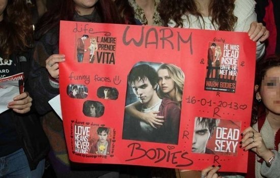 Николас Холт, расставшись с Дженнифер Лоуренс, отправился на работу в Рим, где представил свой новый фильм «Тепло наших тел». На баннере мелькает страшное «от создателей «Сумерек» — и это правда: за картину отвечает студия Lionsgate, купившая студию Summit Entertainment. Вместо вампиров здесь действуют зомби: подвергшийся зомби-вирусу мальчик влюбляется в живую девочку и потихоньку начинает исцеляться. В нашем прокате фильм выйдет 31 января, и мы узнаем, достойный ли это ответ «Сумеркам» или нет. Судя по ролику, фильм должен получиться с циничным юмором, а не сладострастным придыханием.