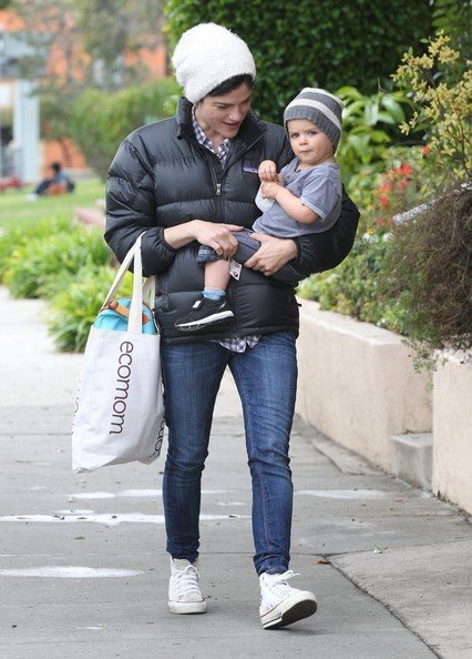 Ох уж эти голливудские мамаши! Выглядит просто нелепо: сама упиндерилась по полной, шапка, тёплая куртка, джинсы, а ребёнка как будто забыла одеть. Может там и действительно совсем не холодно. Но такой контраст в одежде я объяснить не могу.