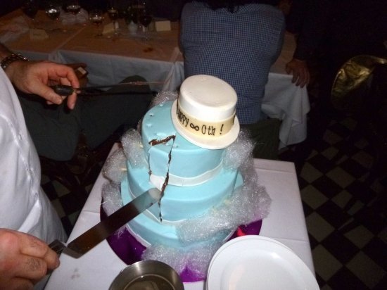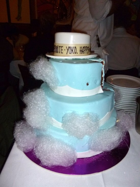 Смотрим на бодрую Йоко и роскошный тортик, украшенный белым цилиндром, который ей преподнесли товарищи!