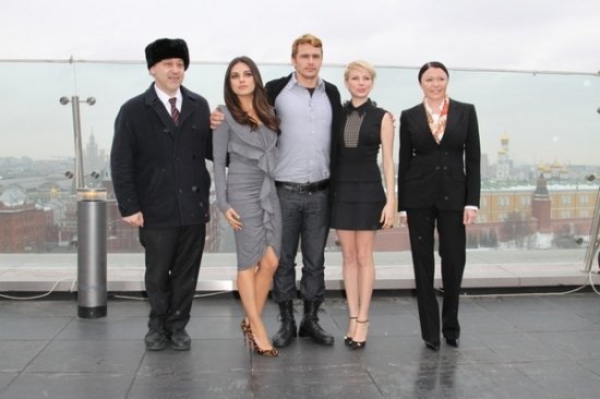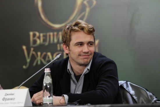 Попозировав фотографам, звезды спустились вниз в зал пресс-конференции. Там случился небольшая накладка: не сразу заработали устройства синхронного перевода. Джеймс Франко, и так-то спавший, тут же бросил попытки что-то понимать и снял наушник. Мила Кунис взяла на себя роль переводчика, и пока технические трудности не были решены, переводила вопросы своим американским коллегам.