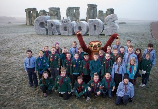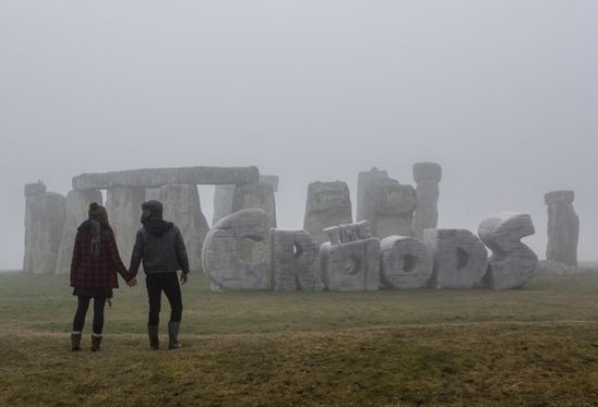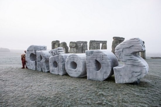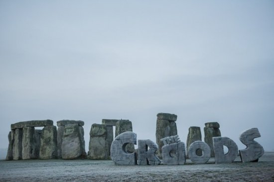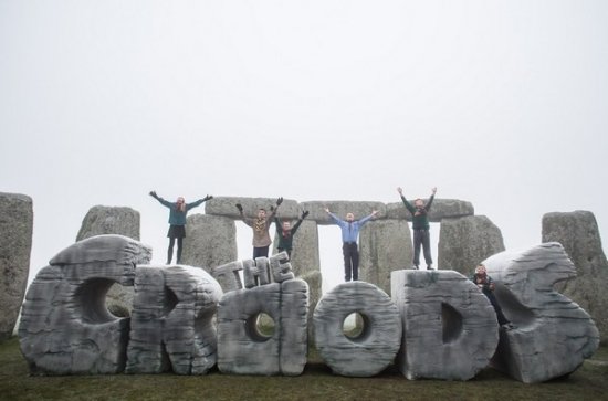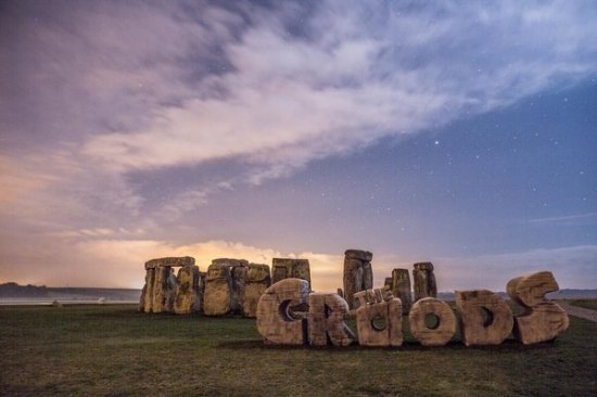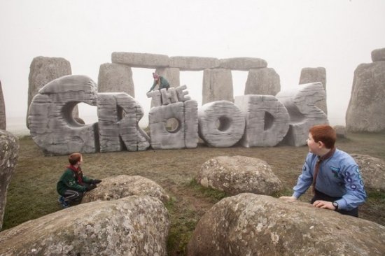 День весеннего солнцестояние или «день весеннего равноденствия» является первым днем астрономической весны, каждый год рано утром друиды и язычники собирались в Стоунхедже, чтобы увидеть как восходит солнце над доисторическими камнями. В этом году, на рассвете гигантский монумент — надпись «The Croods» дополнил этот пейзаж и стал частью этих особых торжеств.