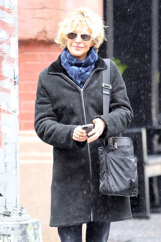 Не только мы в России никак не можем дождаться в этом году весны: старушку Европу тоже засыпает снегом и, как видите, Америку (Нью-Йорк, в частности) тоже. Мэг Райан, впрочем, не унывает: снег-снегом, а ее походу на ланч в Mercer Kitchen в Сохо ничто не помешает!