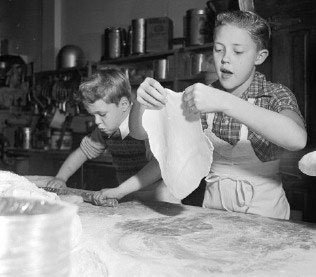 Крис (тогда еще, впрочем, Ронни) в годы младые. Помогает отцу в семейной пекарне