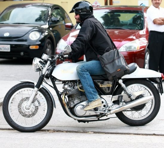 Киану Ривз заганул нам задачку! Все знают про главное хобби артиста — мотоциклы, знают и про то, что у него есть байк фирмы Norton классической модели и ЧЕРНОГО цвета (собственно, не так давно мы с вами его на нем разглядывали). И тут вдруг — бац! — опять Киану, опять «Нортон», но — БЕЛЫЙ!