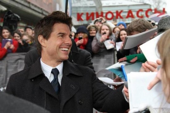 Вечером в киноцентре «Октябрь» состоялась премьера фильма. Погода снова не радовала — артистам пришлось ходить под зонтиками в пальто, прячась от снега с дождем. мы помним, что Том Круз всегда работает на износ на красных дорожках и фотографируется с КАЖДЫМ поклонником. Так было и в этот раз — ну, почти: из-за дождя Круз просто физически не смог дотянуться до всех размокших постеров. Тем не менее, на дорожке он провел ПОЛТОРА ЧАСА — единственный артист на нашей памяти, устраивающий такой аттракцион щедрости для фанатов.
