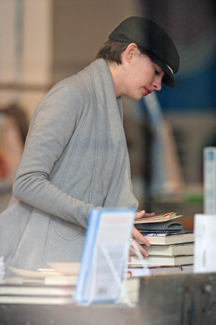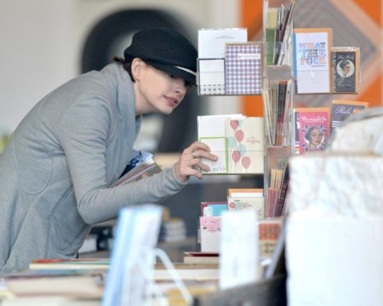 Судя по тому, что помимо стопки литературы (в ней мы разглядели «Американскую Исиду» — труд о жизни и творчестве писательницы и поэтессы Сильвии Плат, и что-то про «все натуральное»-), актриса накупила еще и открыток, заключаем, что она старалась не для себя, а выбирала презенты кому-то из близких.