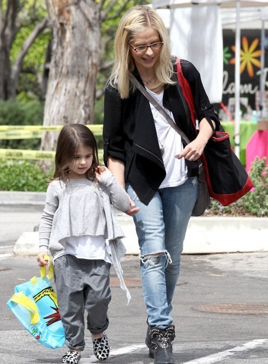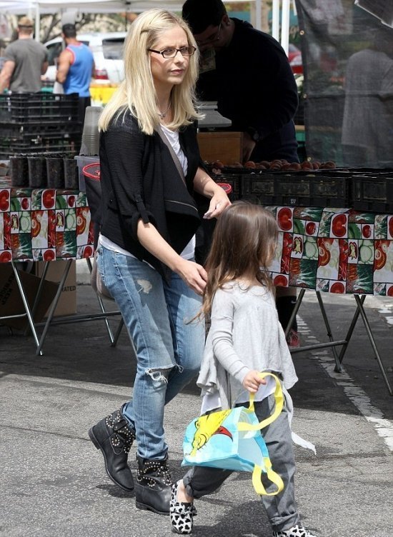 Сара Мишель Геллар с дочкой на фермерском рынке