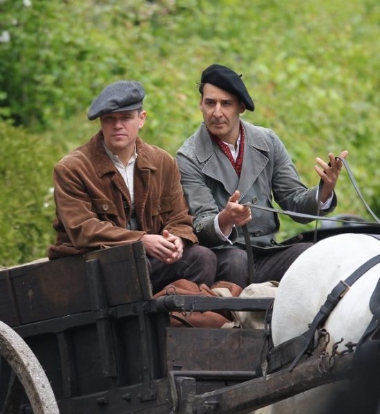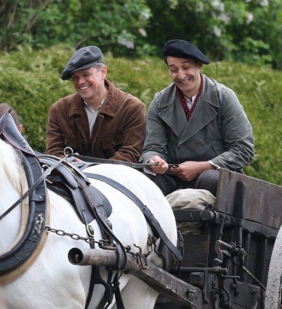 Мэтт Дэймон и Жан Дюжарден на съемках у Джорджа Клуни