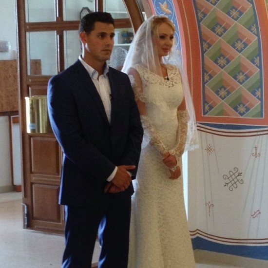 Дарья и Сергей Пынзарь обвенчались в эти выходные, скрепив тем самым перед Богом свой брачный союз, заключенный три года назад. На таинство были приглашены только самые близкие люди пары, а вот скажем, другую знаменитую парочку из «Дома-2» — Евгению Феофилактову и Антона Гусева — не пригласили. Наверное, это оттого, что у Жени слишком длинный язык — недавно она проболталась, что Даша ждет второго ребенка.