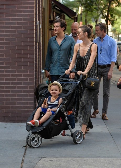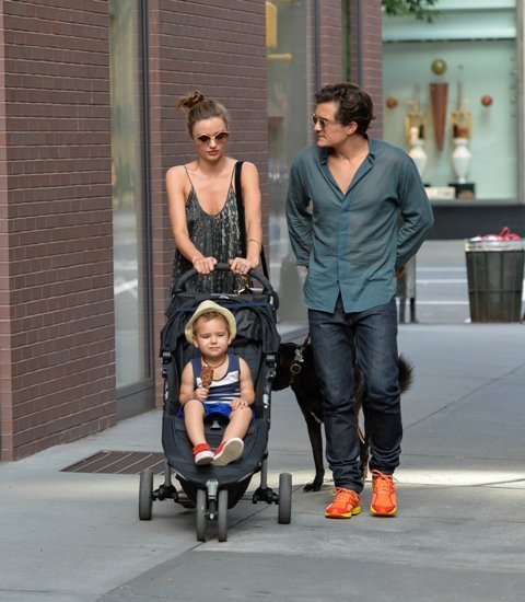 Орландо Блум с женой Мирандой Керр и сынулей Флинном отметил День независимости США походом в Центральный парк Нью-Йорка. Звездная пара взяла на поводок домашнего любимца — пса Сайди (помесь дворняги и персидской борзой), найденного и спасенного Орли на съемках «Царствия небесного«, — усадила Флинна в коляску, и отправилась в путь-дорогу.