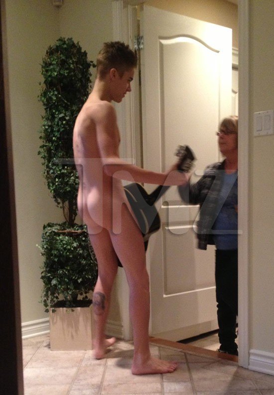 Дело было в доме бабушки Джастина в Канаде, так что праздновали, сами понимаете, в тесном семейном кругу, и фотографии, сделанные при всем при этом, соответственно, предназначались для семейного же просмотра. Тем не менее они каким-то образом оказались в руках репортеров TMZ (плюс рассказ о реакции бабушки — та велела Джастину немедля идти в свою комнату и одеться-), ну а те щедро поделились с общественностью-)
