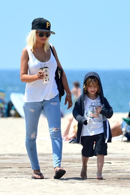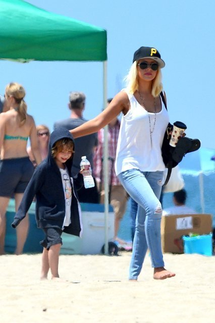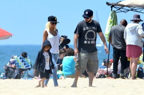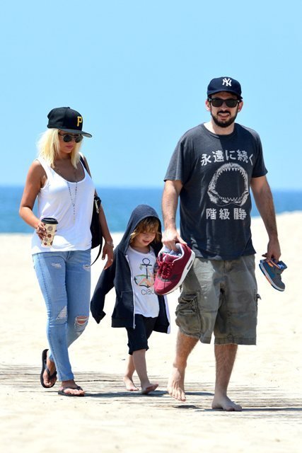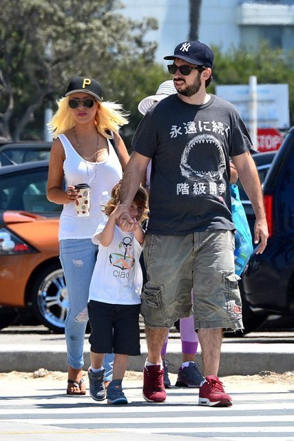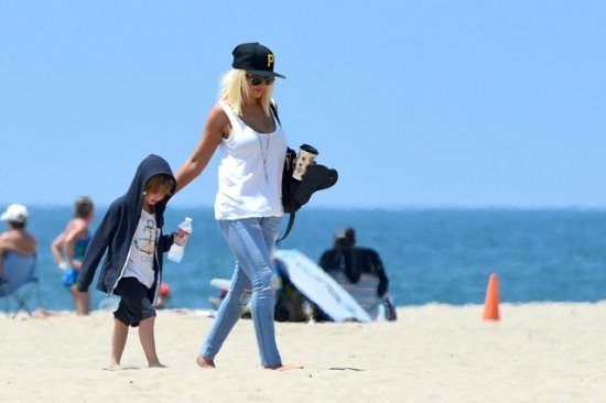 Кристина Агилера: пляжная прогулка с сыном и бывшим мужем