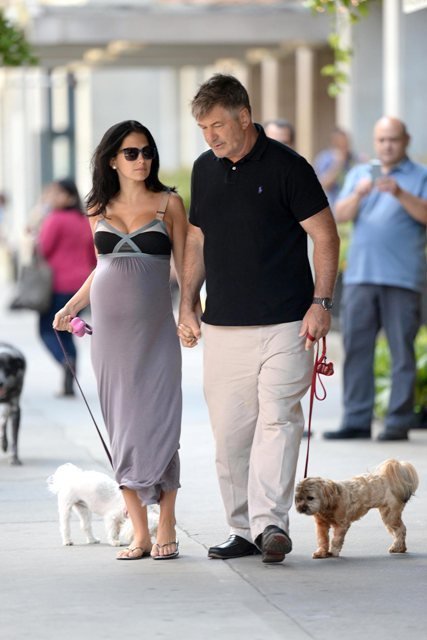 Алек Болдуин вместе с глубоко беременной женой Хиларией (такое ощущение, что рожать ей буквально на днях) попался в объективы папарацци в Нью-Йорке.
