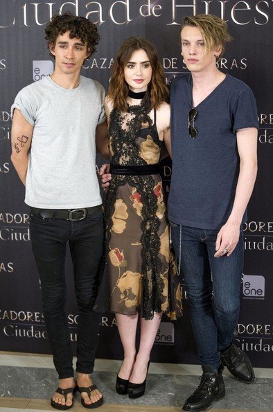 Главное трио фильма «Орудия смерти: Город костей» перебралось в Мадрид. Премьера была скромной, без особых красных дорожек и нарядов — отдувалась за всех по традиции одна Лили Коллинз. Девушке пришлось встать на высокие каблуки Brian Atwood и надеть легкое платье с кружевами и цветами от Dolce & Gabbana. Зато парни расслабились и вышли к людям так, словно они — на фанатских посиделках. Джейми Кэмпбелл Бауэр, как выражаются на Западе, транслировал Джонни Деппа, прицепив на пояс платок схожий с тем, что обычно носит Джонни. Роберт Шиэн вообще вышел в любимых сланцах — но! Чтобы как-то разнообразить внешний вид и порадовать нас, парень нарисовал на плече главную руну фильма! Для тех, кто в каске, так и подписал: «руна». И всем показывал, чтобы не пропустили. Умеет веселиться чувак, что и говорить ))