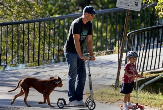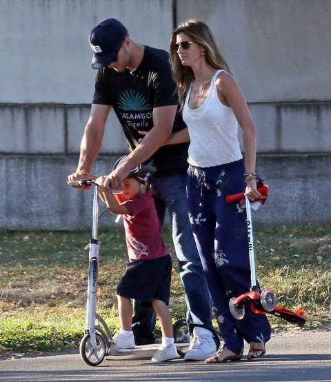 Жизель Бундхен вместе с мужем Томом Брейди и сыном Бенджамином поймалась в объективы папарацци во время активного семейного отдыха в Бостоне. Спортивная троица сначала походила на веслах в лодке (Жизель гребла, Бенджамин командовал, а папа страховал, сидя в другой лодке), а затем отправилась в парк.