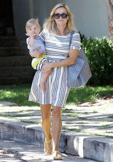 Звезда и ее очаровательный карапуз Теннесси «попались» в тот момент, когда покидали дом друзей. где просидели пару часиков в гостях. Заглядываем под кат и рассматриваем в подробностях стройные ножки Ризун и ее платье в полосочку!