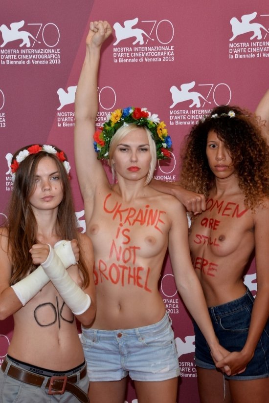 Венецианский фестиваль также не миновал тренд под названием Femen. Протестующие барышни приехали на кинофестиваль для того, что представить документальный фильм «Украина — не бордель» австралийки Китти Грин, который был представлен во внеконкурсной программе фестиваля.