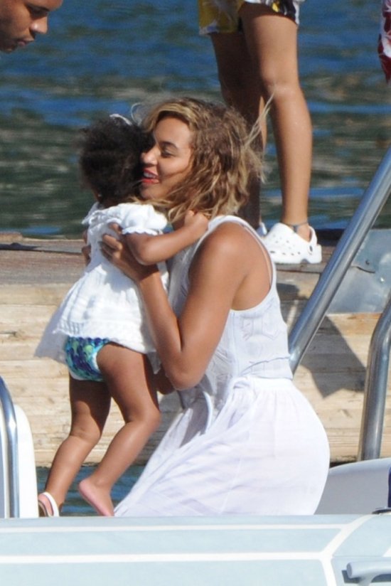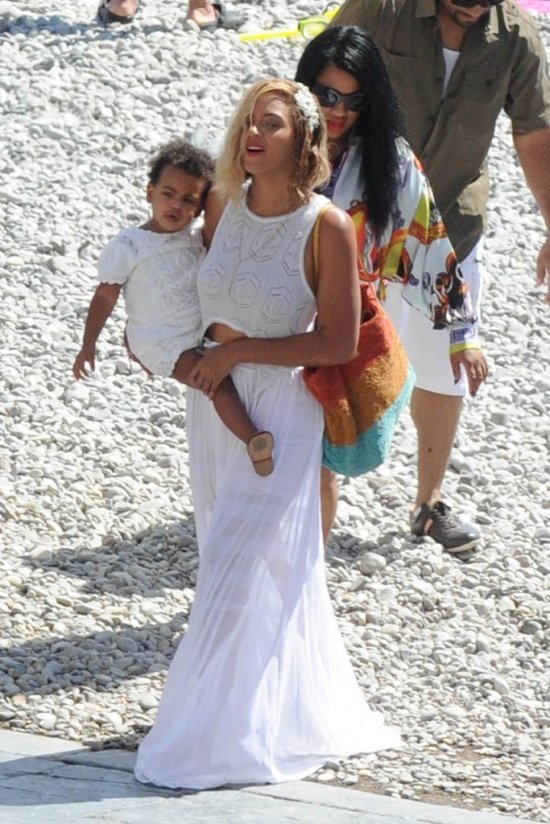 Бейонсе и Jay Z вместе с малявочкой Блю Айви недавно засветились во время отдыха на Эолийских островах неподалеку от Сицилии. Причем слово «засветились» тут как нельзя кстати, потому что семейство прибегло к тактике «family look» и блистало белоснежными одеждами. Впрочем, выбор нарядов мог быть продиктован жарой, но, тем не менее, выглядели они эффектно, особенно детка с ушками (бантиком?) на кудрявой голове.