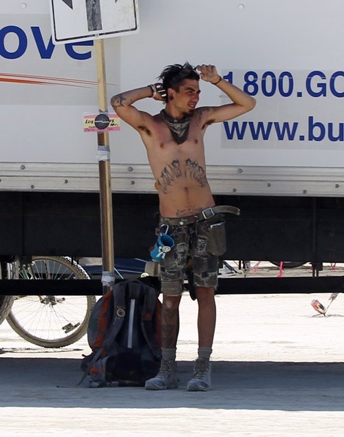 Недавно папарации едва ли не впервые смогли запечатлеть панкового парня — и нигде нибудь, а на знаменитом фестивале Burning man в пустыне Невада, крупнейшем в США сборище фриков (мы уже видели, как Пи Дидди отрывался там в роли розовой феи).