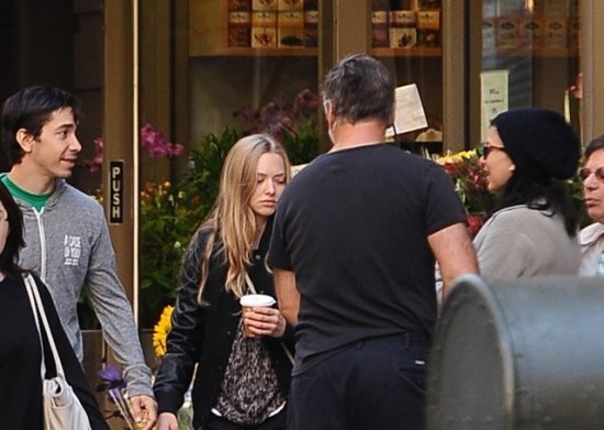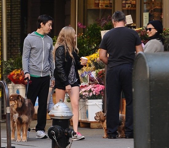 Аманда Сайфрид с Джастином Лонгом в очередной раз отправились выгуливать пса Аманды Финна. И — надо же! — натолкнулись на Алека Болдуина с женой Хиларией и дочкой Кармен — ну, Нью-Йорк — деревенька ведь небольшая!-) Болдуины, заметим, были заняты абсолютно тем же самым делом — выгулом четвероногого любимца. Попутно семейство остановилось у цветочного магазина, и там-то «встреча на Эльбе» и состоялась.