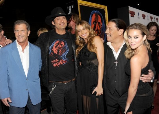 В Лом-Анджелесе Роберт Родригес и Дэнни Трехо представили свой новый опус «Мачете убивает» — продолжение бравых похождений Мачете, который на сей раз вынужден сражаться с безумным террористом Мелом Гибсоном. Гибсон тоже был на ковровой дорожке в голубом пиджаке и радовался всему, как ребенок. Из дамской части фильма пришли София Вергара и Алекса Вега, а вот Джессика Альба и Мишель Родригес попустили событие, не говоря уже об Эмбер Херд и Леди Гага. Жаль! Ждем их феерических появлений на следующих премьерах — Эмбер пусть приводит Джонни Деппа, он со своими перьями прекрасно впишется в интерьер!