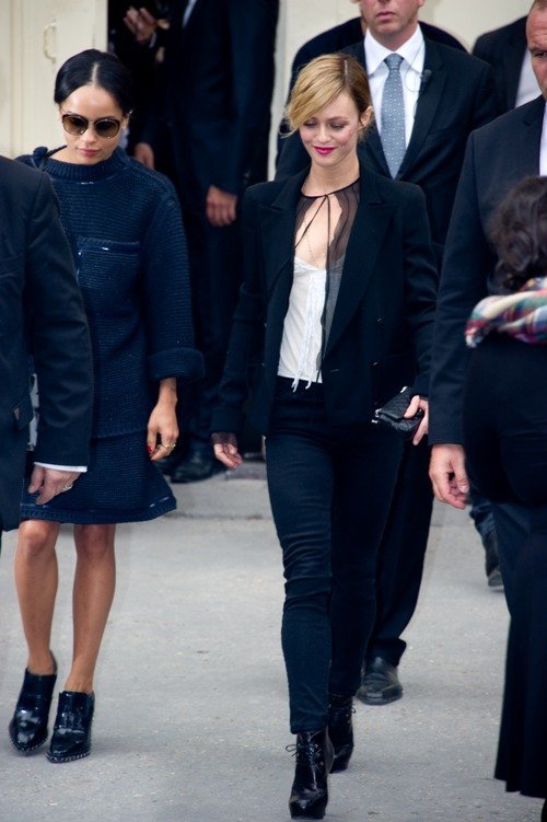 Наверно, больше всего известных лиц можно было заметить на показе Chanel — все таки, культовая марка, которой руководит не менее культовый Карл Лагерфельд не может не привлечь внимание знаменитостей. Которые, кстати, наперебой ударились в трактовку узнаваемого шанелевского стиля — что, в общем, для некоторых закончилось провалом (об этом позже, сегодня пятница, Звездный провал уже зреет в злобном умишке).