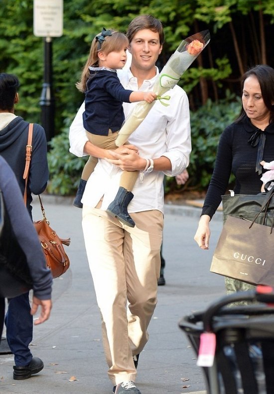 Арабелла с папой, Джаредом Кушнером, идет поздравлять маму и знакомиться с братиком