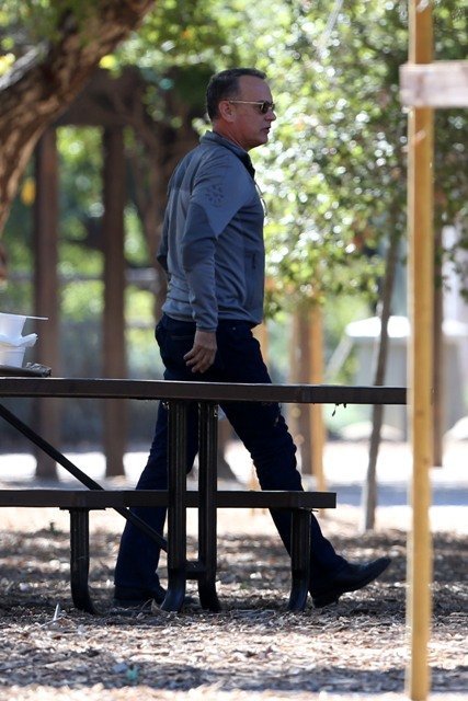 Ну, положим, не совсем завтрак, а очень даже ланч, и не на траве, а за столом и на скамьях, но все же на природе!-) Том Хэнкс с женой Ритой Уилсон и сыном Труманом откушали на днях в парке в Оджай, Калифорния.